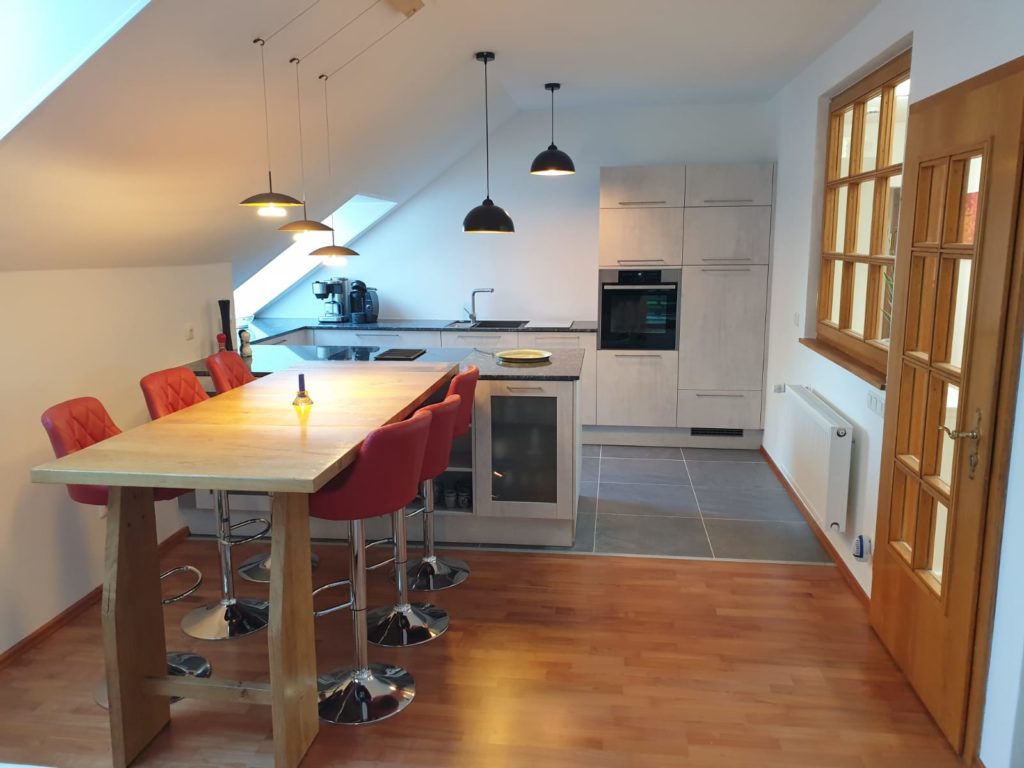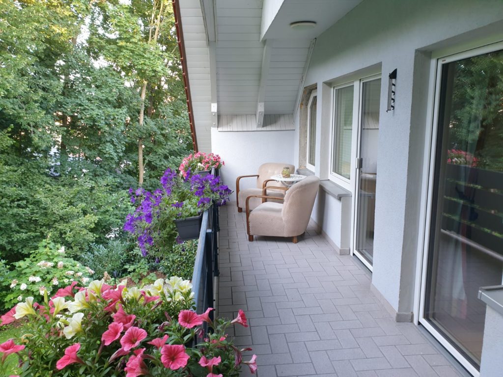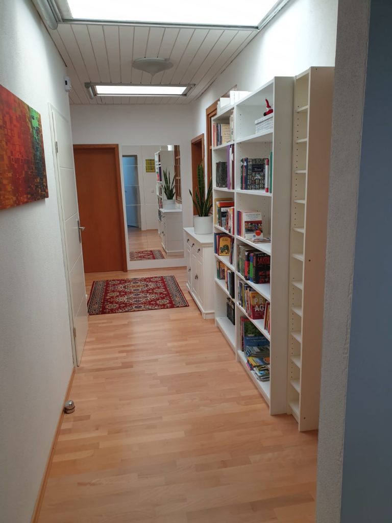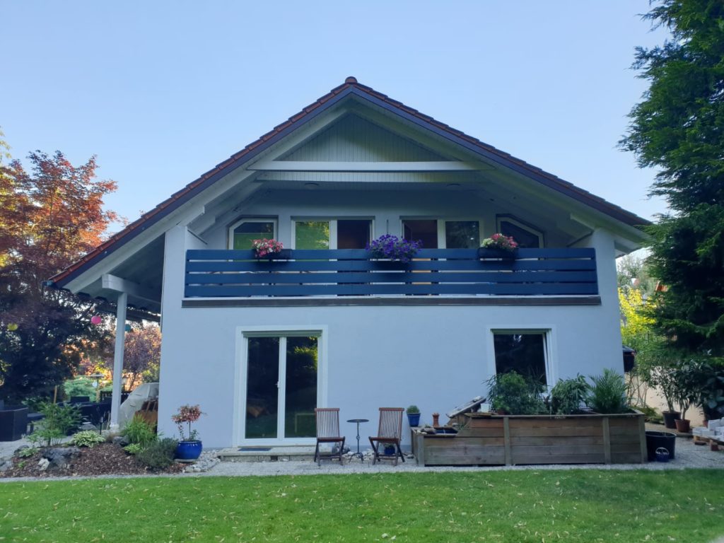 Fotos Der Flur Das erste Schlafzimmer Das zweite Schlafzimmer Das zweite Schlafzimmer Der Balkon Blick in den Garten Herbst-Garten Außenansicht vom Garten aus Essbereich Küche und Essbereich